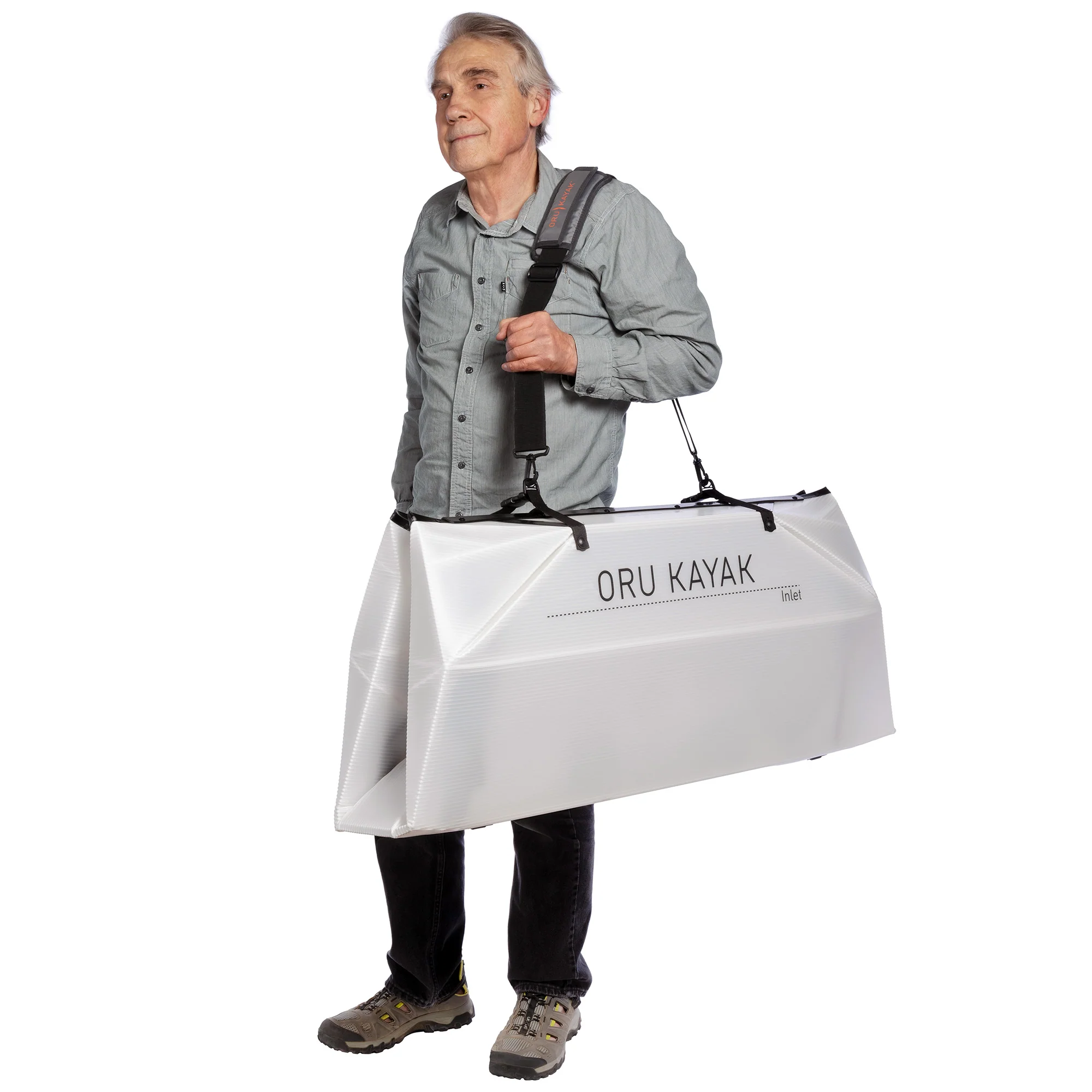 Our super popular Inlet kayak already comes with a convenient carrying handle. But if you prefer the ease of a kayak carrying strap, we’ve got you covered. The Inlet Shoulder Strap frees up your hands and comfortably carries your Inlet wherever you go. Built to be durable and weather-resistant, this kayak shoulder strap makes toting your Inlet even more convenient. Prefer to keep your kayak protected from the elements? Good news—the Shoulder Strap is fully compatible with the Oru Inlet Pack.
